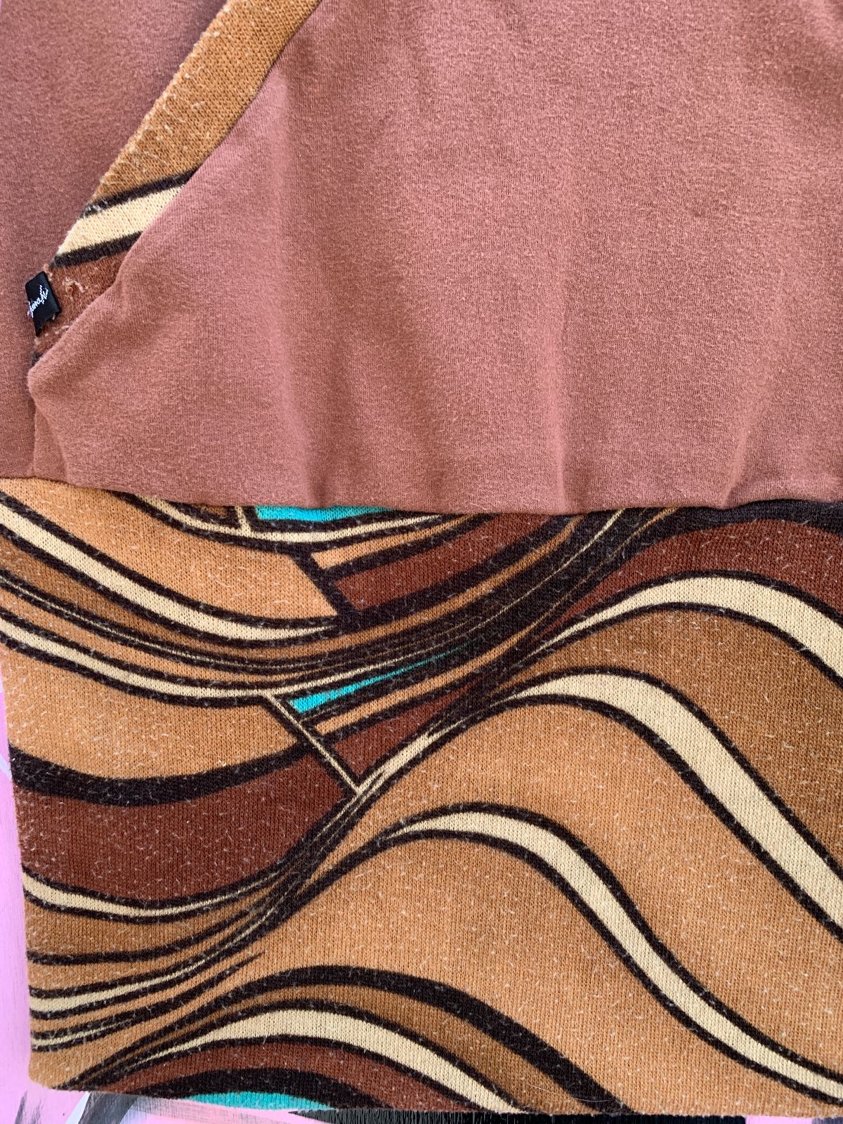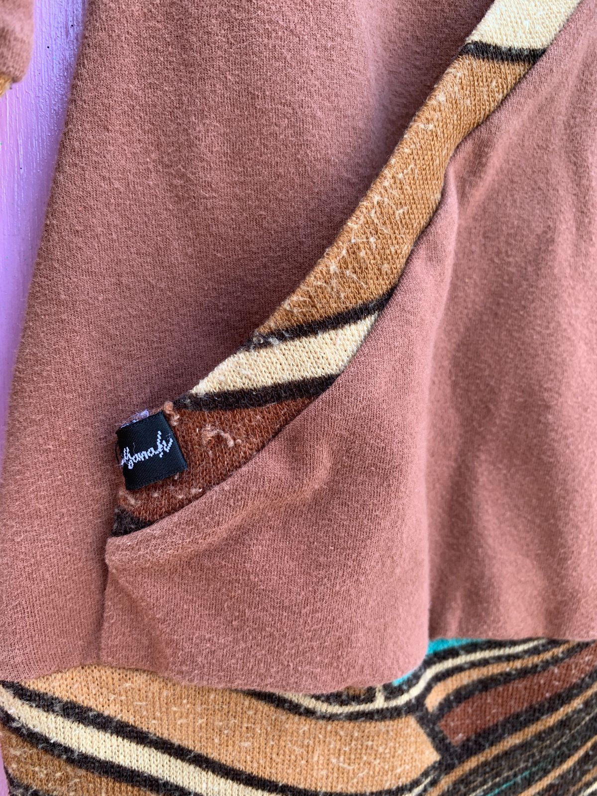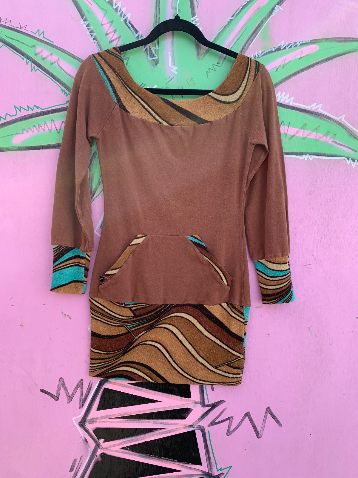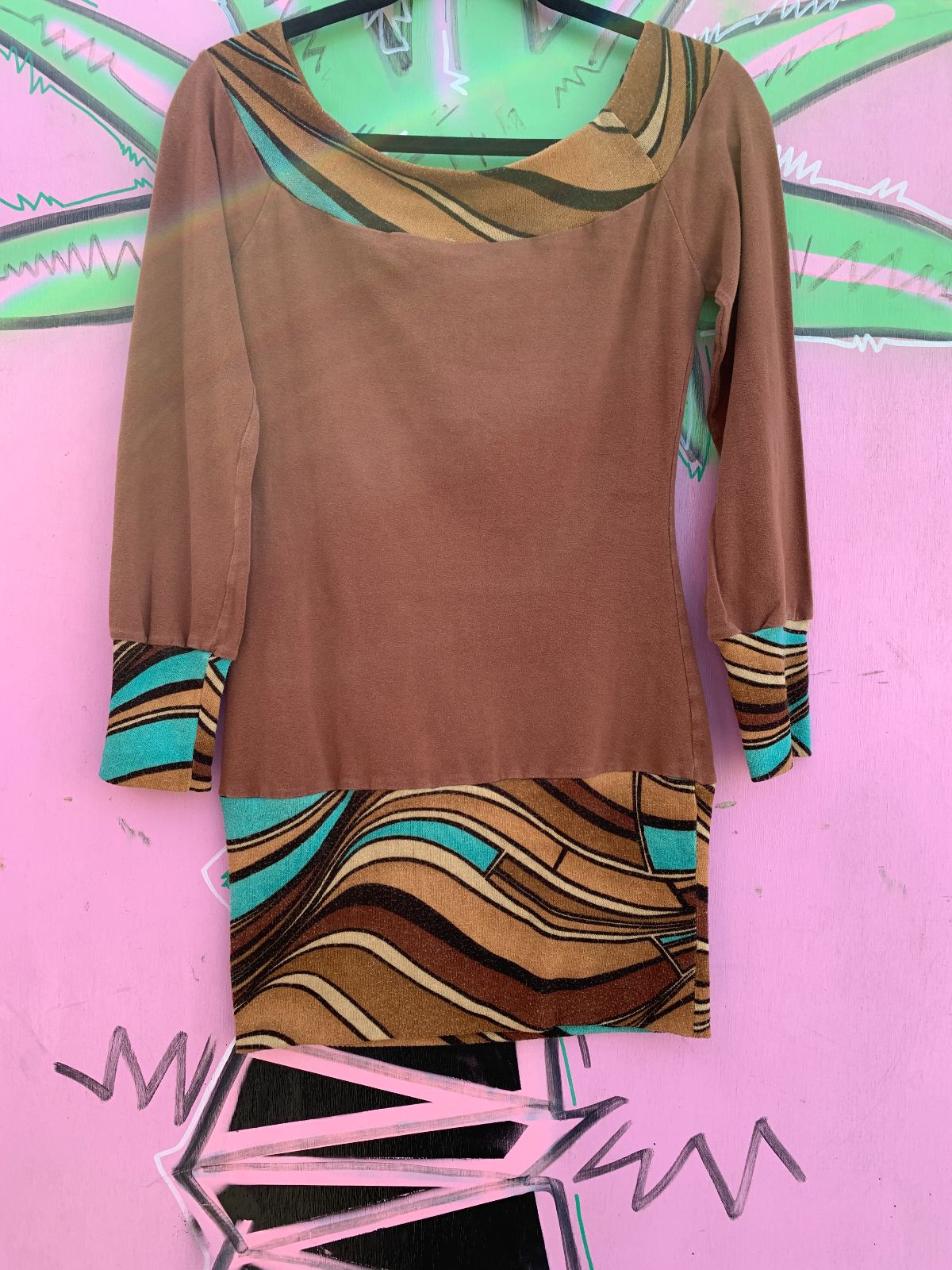 *AS-IS* Y2K! OFF SHOULDER KNIT SWIRL PATTERN TRIM LONG SLEEVE BODYCON DRESS
