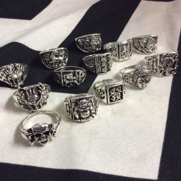 ASSORTED RINGS ENGRAVED SKULL ELEPHANT BUDDHA ASIAN WRITING LION SILVER RING