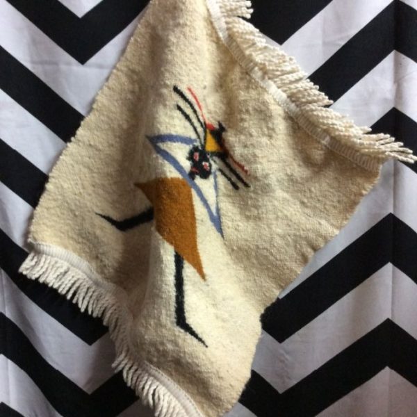 Tapestry, wool, Aztec figure graphic, fringed edges top & bottom, creme/brown/black, size 18″ x 14″