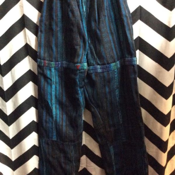 Pants, drawstring waist, patchwork design, Aztec style, Ethnic textile fabric, indigo, size adjustable