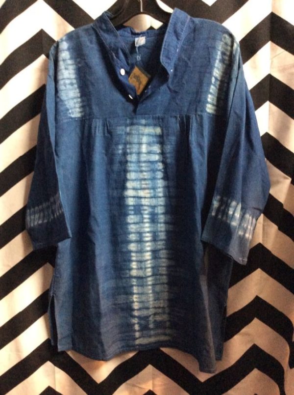 PULLOVER SHIRT W/ AZTEC TRIM DESIGN & 3 BUTTON NECK
