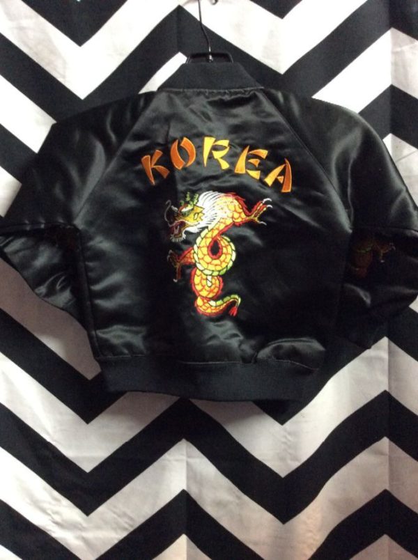 Bomber jacket, zip-up, embroidered Korea & dragon designs, black/white/yellow/orange, size Toddler