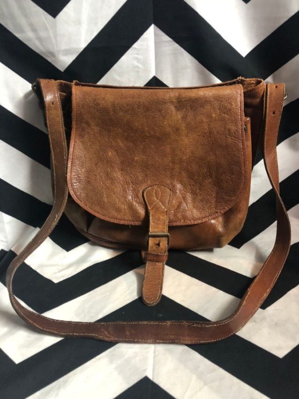 CLASSIC LEATHER DUFFLE STYLE CROSS BODY BAG PURSE WITH DOUBLE HANDLES & BRASS HARDWARE