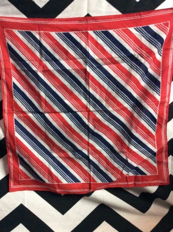 Banana/scarf, cotton, diagonal candy stripe design, square, red white blue