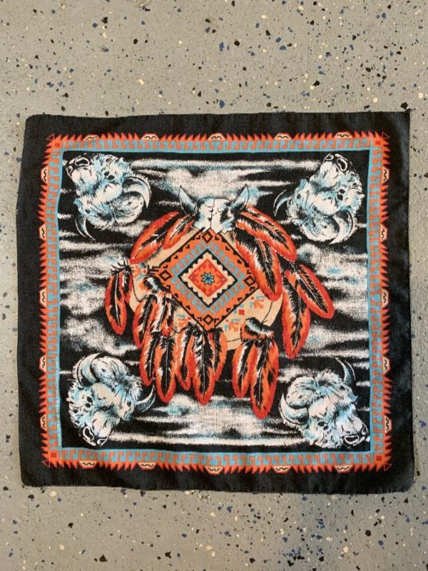 BANDANA SOUTHWESTERN MEDICINE WHEEL W/ FEATHERS & BUFFALO HEADS PRINT