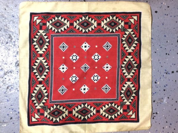 Bandana, square shape, Southwestern Native American tribal geometric print, tan/red/black/white/green, size one size