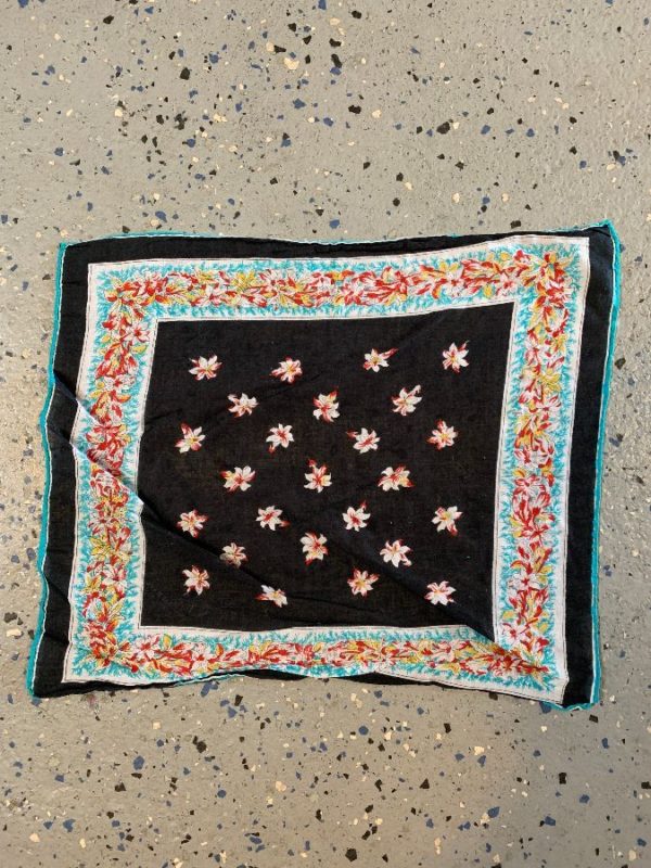 Bandana, square shape, hankie, super soft, Hawaiian hibiscus floral tropical print, black/turquoise/red/yellow/white, size one size