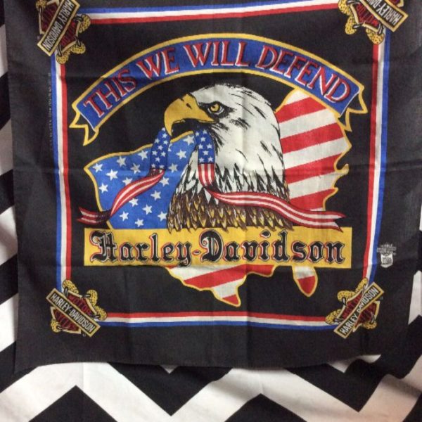 HARLEY DAVIDSON BANDANA/SCARF – HARLEY EAGLE DESIGN – THIS WE WILL DEFEND – SQUARE