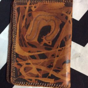 NOTEBOOK HOLDER – LEATHER – ABSTRACT DESIGN – WHIP STITCHED EDGE