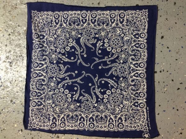 Bandana, square shape, cotton, color-fast, unusual ornate Paisley garden print, blue/white, size one size As is
