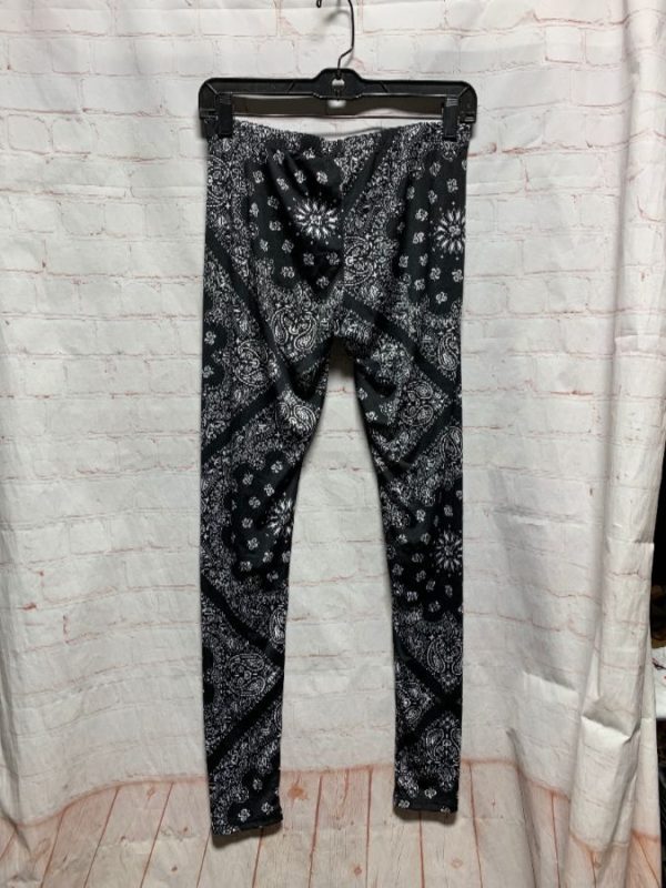 Friday legging pants, polyester with spandex, bandana print in diagonal layout, black/white, size L