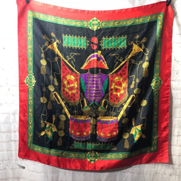 BAROQUE PRINT SCARF W/ TASSELS DRUMS & UNIFORM DESIGN