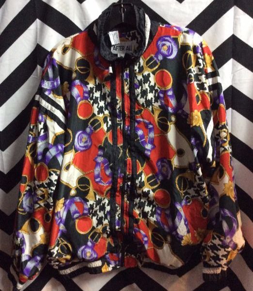 Windbreaker jacket, Baroque print design,black/white/purple/red, size M