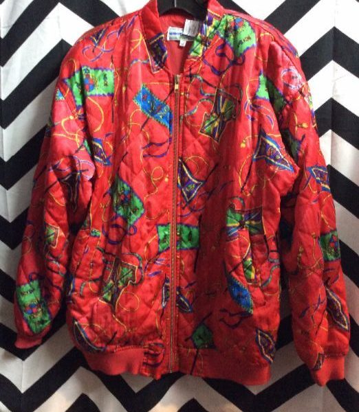 Bomber jacket, zip-up, Baroque print design, quilted, red/green/blue, size M