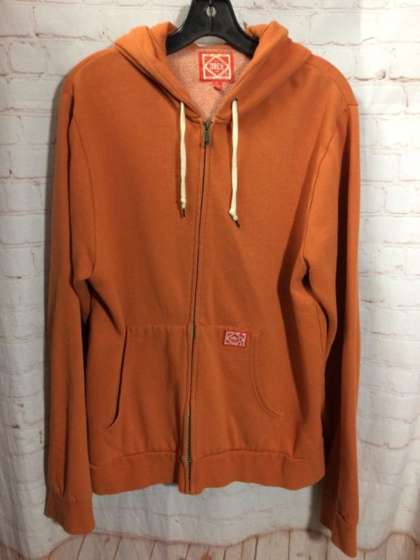 Basic Obey sweatshirt, zip-up, hoodie with drawstring, large divided front pouch, burnt orange, size XL
