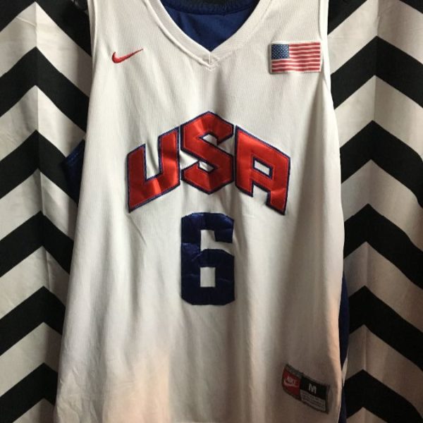 NIKE BASKETBALL JERSEY USA W/ AMERICAN FLAG PATCH JAMES #6