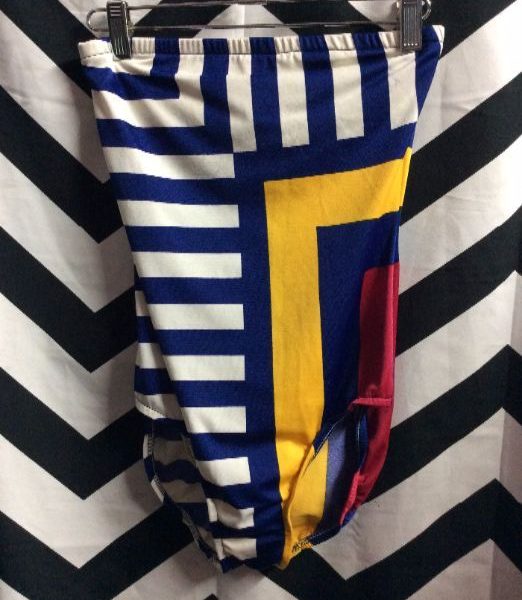 BATHING SUIT – ONE PIECE – STRAPLESS – STRIPED DESIGN – SQUARE GRAPHIC IN FRONT