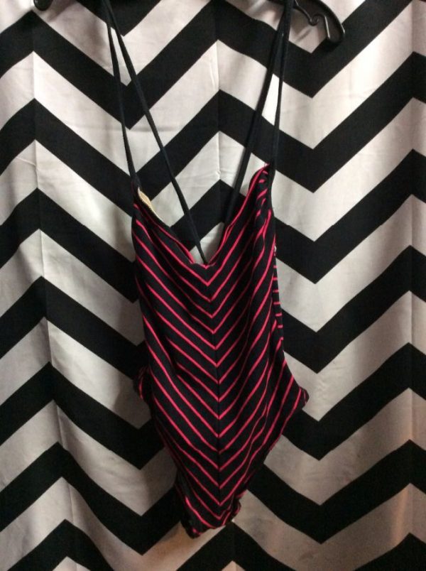 OP BATHING SUIT W/CHEVRON STRIPED COTTON FABRIC & HIGH CUT SIDES