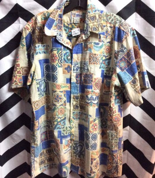 HAWAIIAN SHIRT W/SQUARE PATTERN PRINT DESIGN