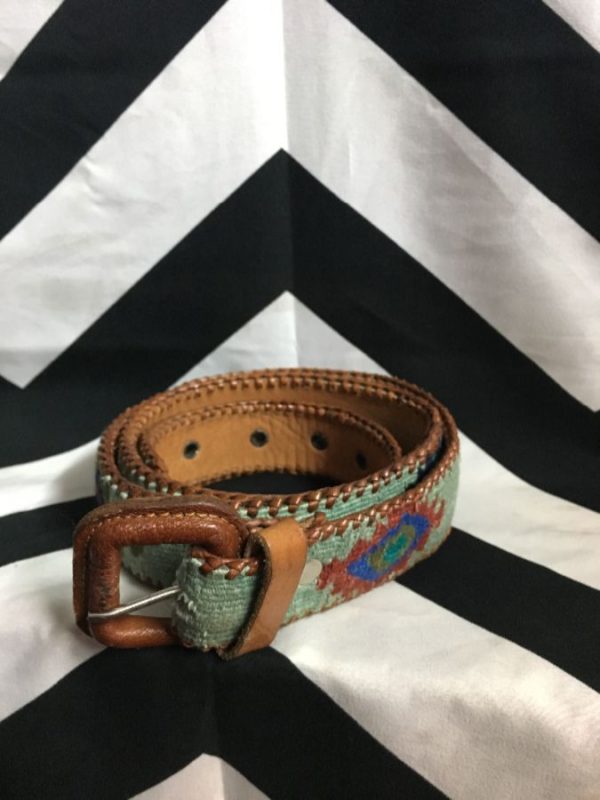 BELT LEATHER W/ WOVEN FABRIC & AZTEC PRINT