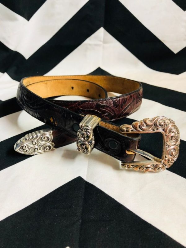 BELT W/ EMBOSSED LEATHER & ORNATE BUCKLE