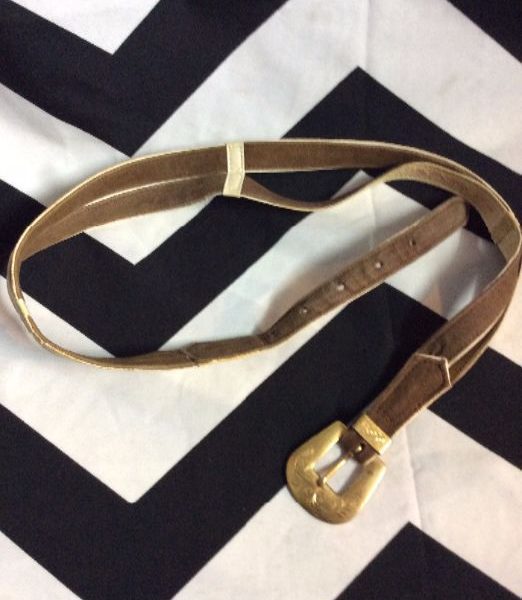 BELT – LEATHER – SPLIT LENGTHWISE – BRASS ENGRAVED ACCENTS & BUCKLE