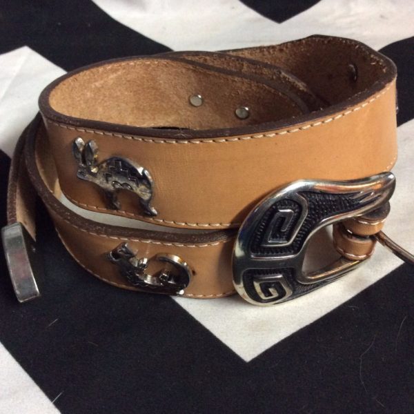 BELT LEATHER DESERT ANIMAL CONCHO ENGRAVED BELT LOOP