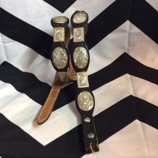 BELT LEATHER & SILVER ENGRAVED CONCHOS *MISSING BUCKLE