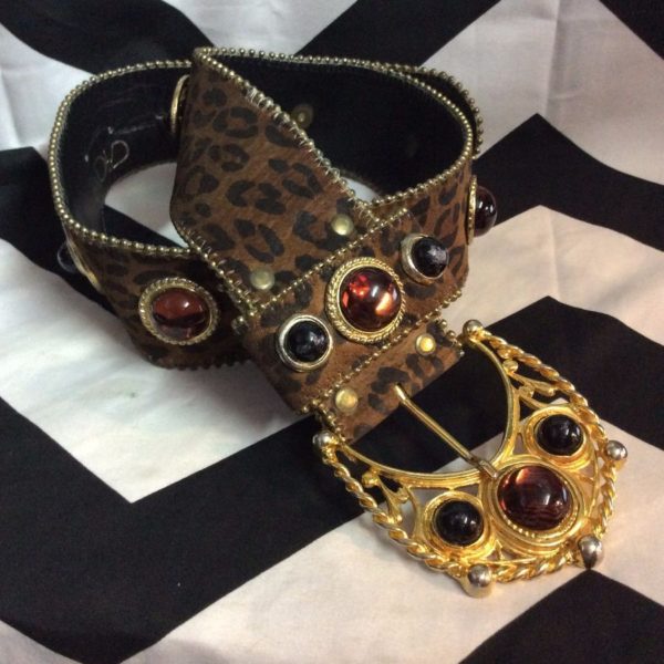 BELT – LEOPARD DESIGN – STUDDED W/GEM/BEADS – GOLD TRIM