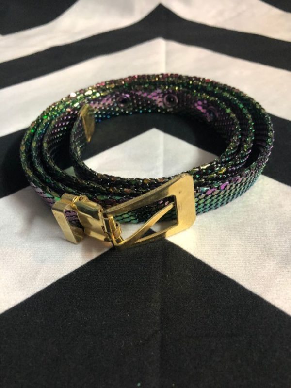 MESH BELT W/ SNAKESKIN LOOK & IRIDESCENT COLORS
