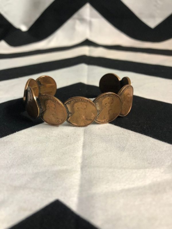 Copper bracelet, welded pennies & bent to shape, copper, size M