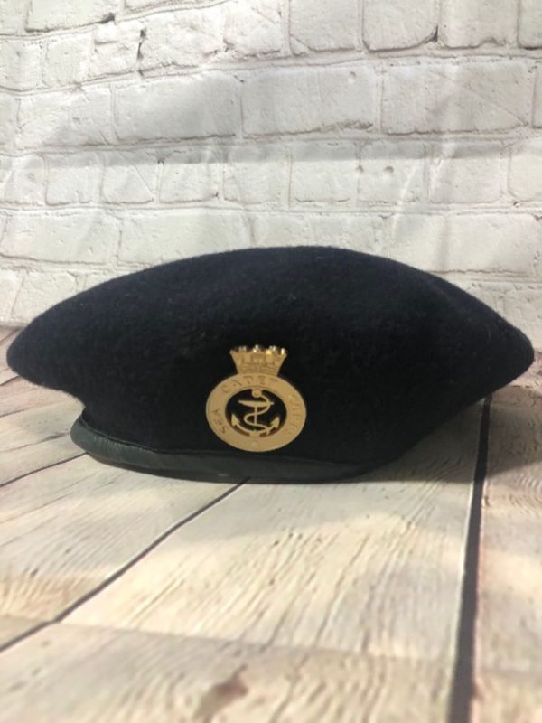 BRITISH BERET W/ SEA CADET CORPS & LEATHER TRIM