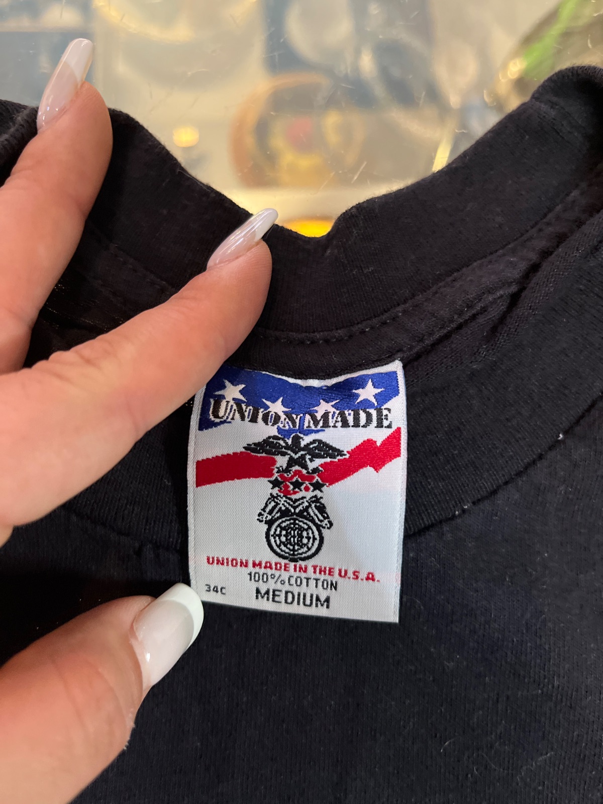 AS IS – SMALL FIT MAY 1985 SPACE SHUTTLE CHALLENGER AMERICAN FLAG LETTERS GRAPHIC T-SHIRT