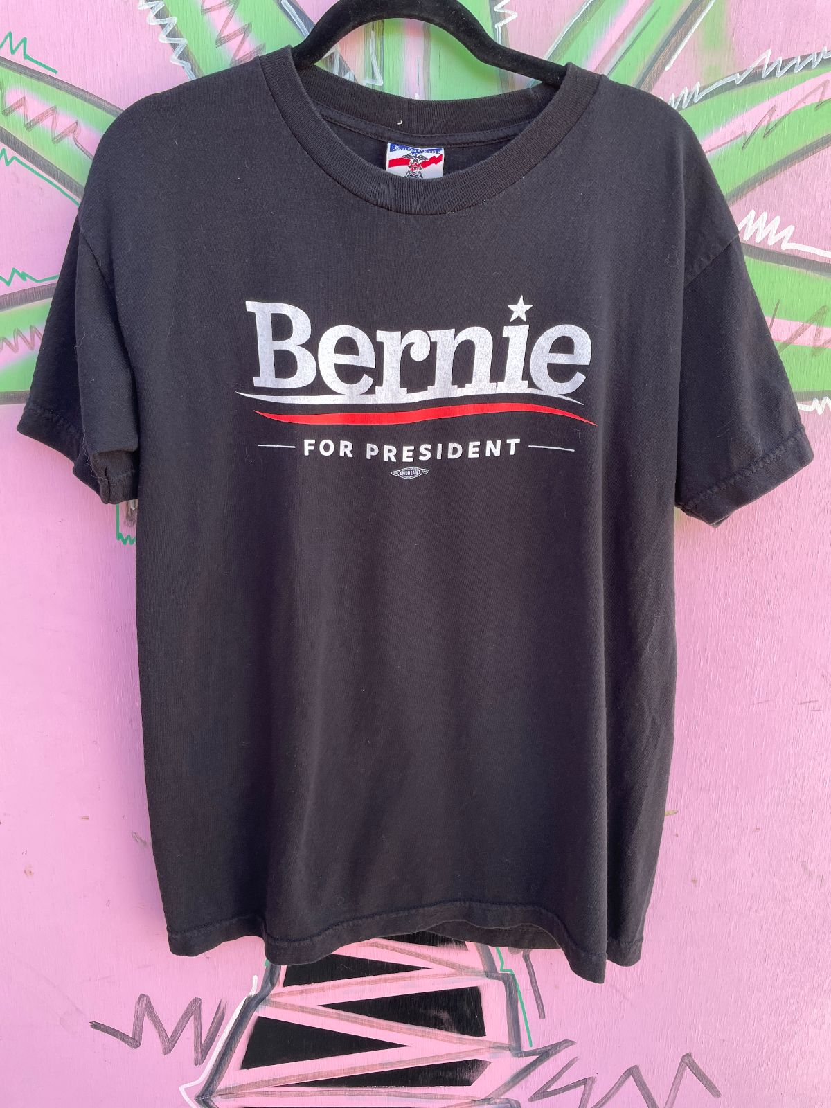 BERNIE T-SHIRT POLITICAL CAMPAIGN GRAPHIC BLACK COTTON