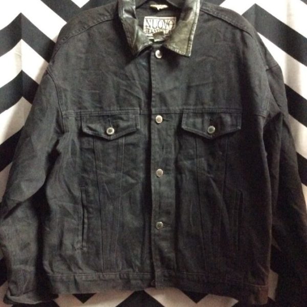 DENIM JACKET W/LEATHER COLLAR