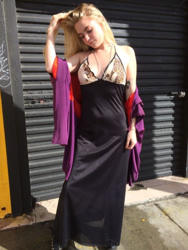 BLACK DRESS WITH LEOPARD MESH BREAST CUPS SPAGHETTI STRAPS – AS IS
