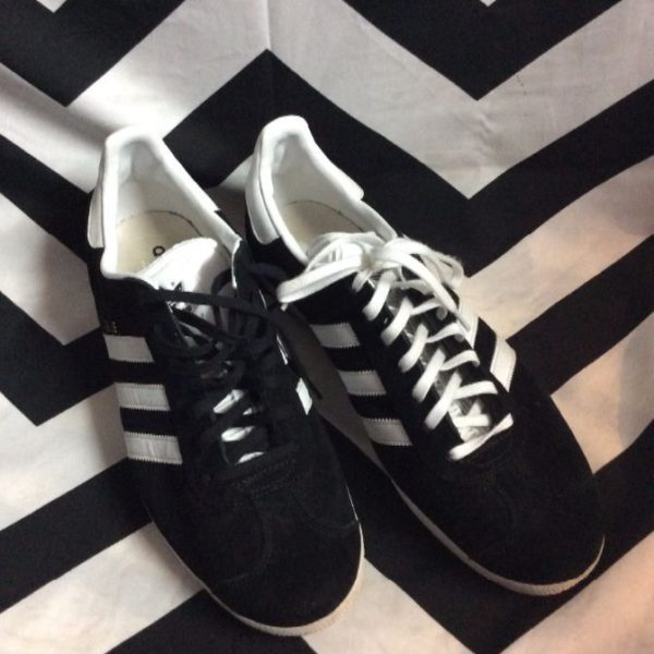 Adidas shoes, Gazelle, lace-up, side stripes, back logo, black/white, size 11