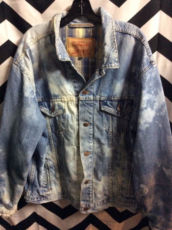 BLEACH SPOTTED LEVIS DENIM JACKET W/PLAID INNER LINING