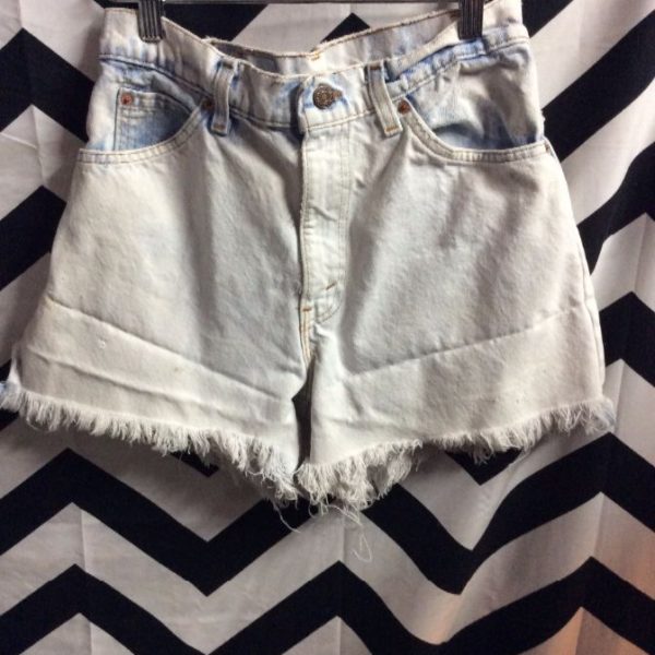LEVIS DENIM SHORTS – CUTOFF – BLEACHED – FRAYED – PAINT SPATTERS