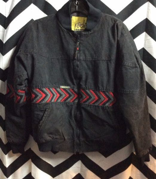 COTTON BOMBER STYLE JACKET W/RED AZTEC STRIPES