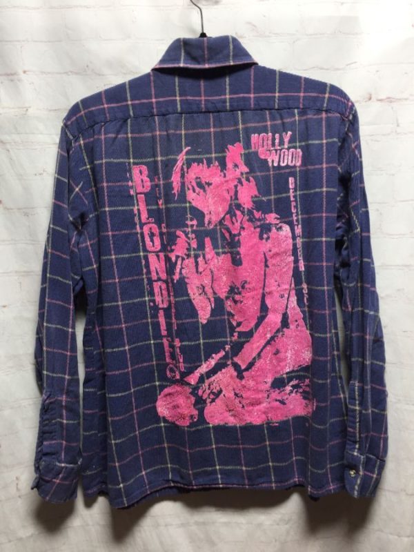 BLONDIE PLAID PRINT FLANNEL SHIRT W/ BACK GRAPHIC PRINT