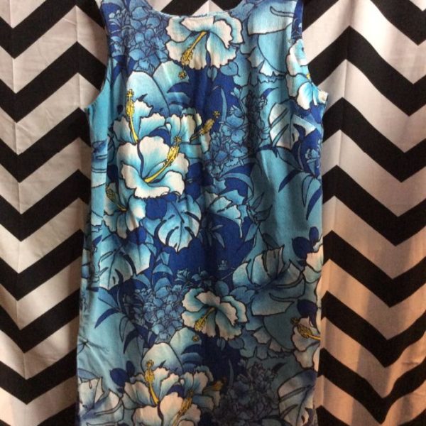 BLUE FLORAL HAWAIIAN STYLE PATTERN DRESS