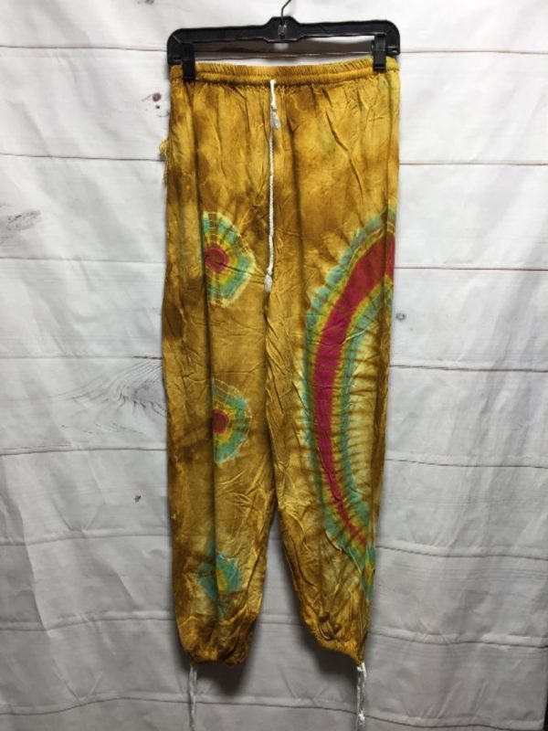 BOHO HIPPY TIE DYE PANTS WITH ANKLE DRAWSTRINGS