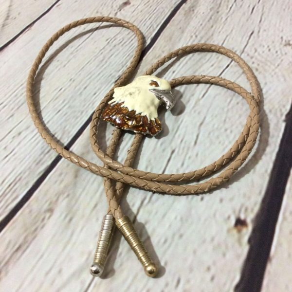 BOLO TIE W/ ENAMELED AMERICAN BALD EAGLE HEAD SLIDE