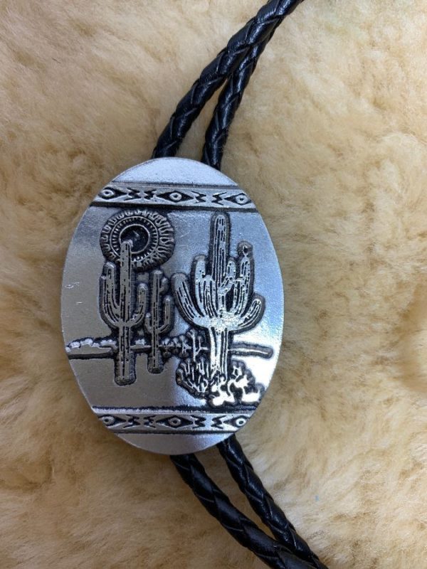 BOLO TIE W/ CACTUS SUN DESERT DESIGN & BRAIDED CORD