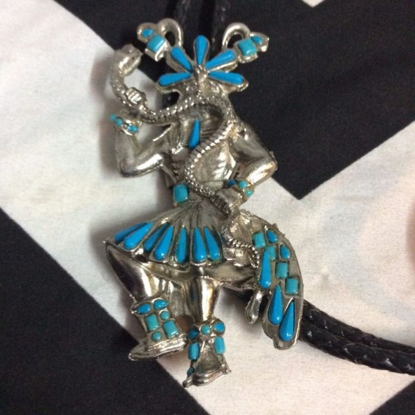 BOLO TIE W/DANCING AZTEC WITH SNAKE