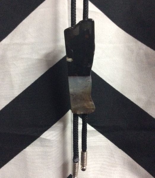 BOLO TIE, AGATE SLAB, FABRIC CORD, BLACK
