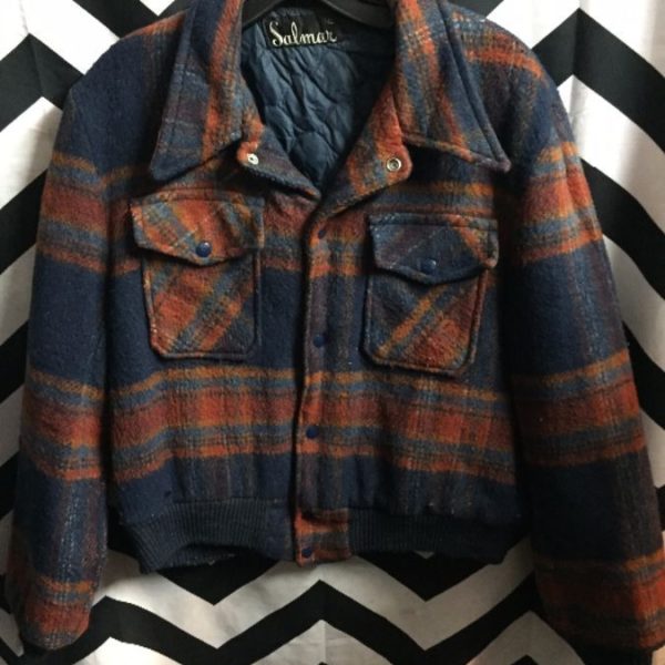 FLANNEL BOMBER CUT JACKET BUTTON-UP W/PLAID DESIGN
