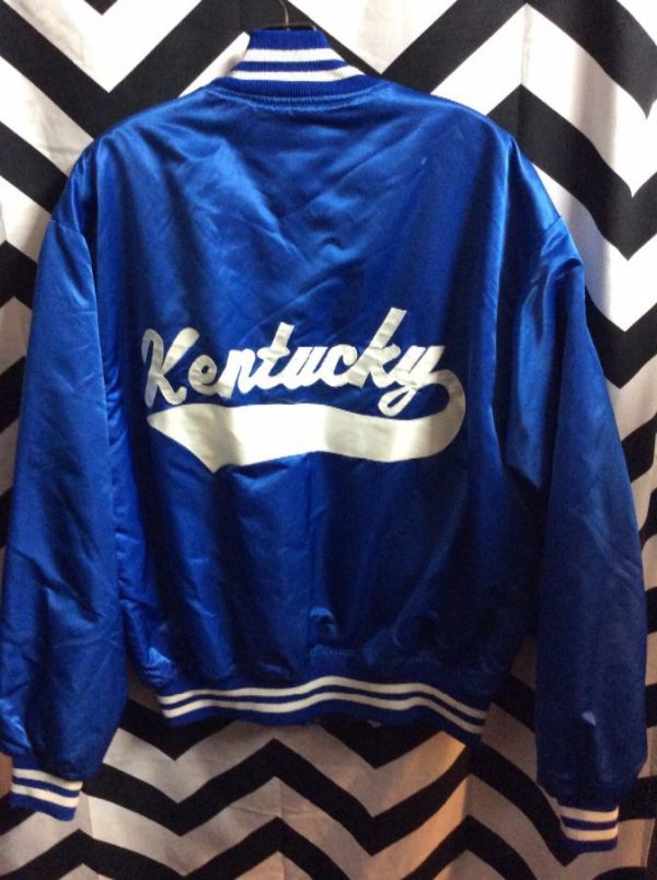 Classic bomber jacket, satin, button-up, Kentucky Wildcats, NCAA, bright blue
