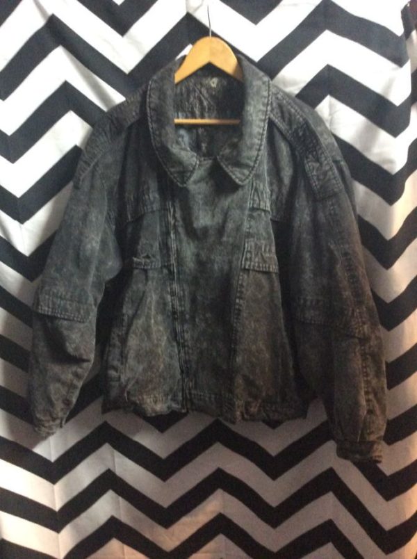 BOMBER JACKET PADDED W/ ACID WASH & FAUX DENIM